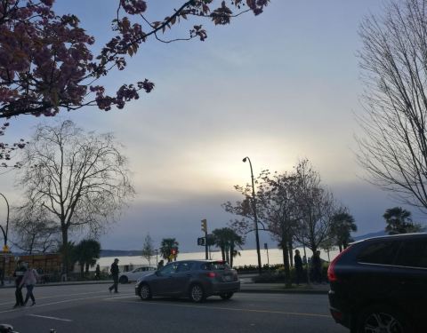 UBC的另外一头开车一直走就会遇到美丽的English Bay Beach,今天人不多,我们在...