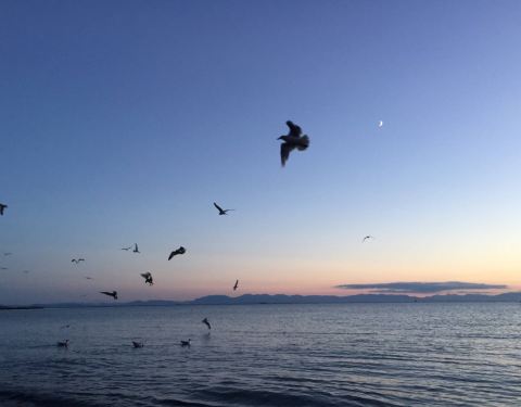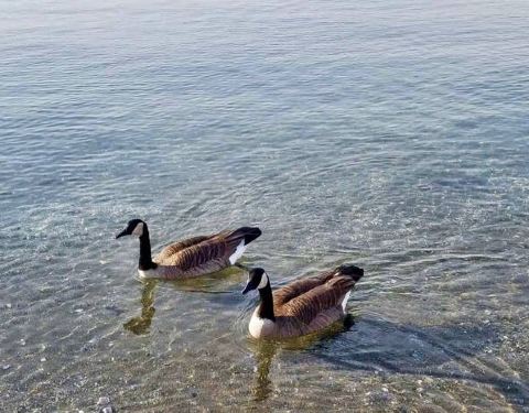 蓝天白云,阳光下泛着淡淡光芒的大海,还有一群群大雁和海鸥。和其他的海湾区别不是很大,如果很有空闲,坐在海边的石头上发发呆吧!