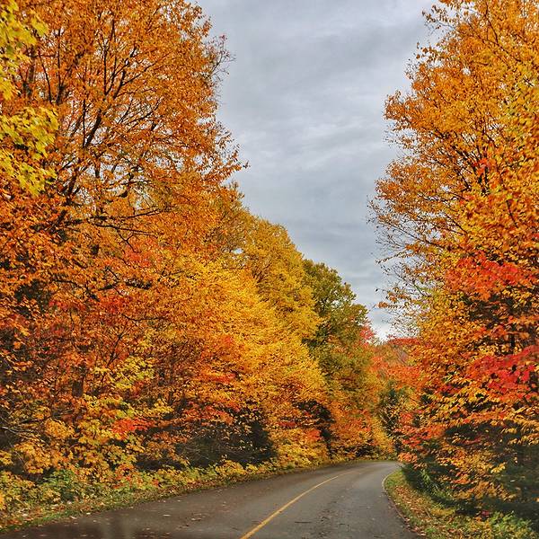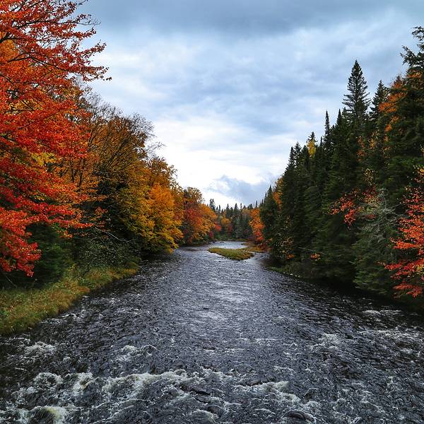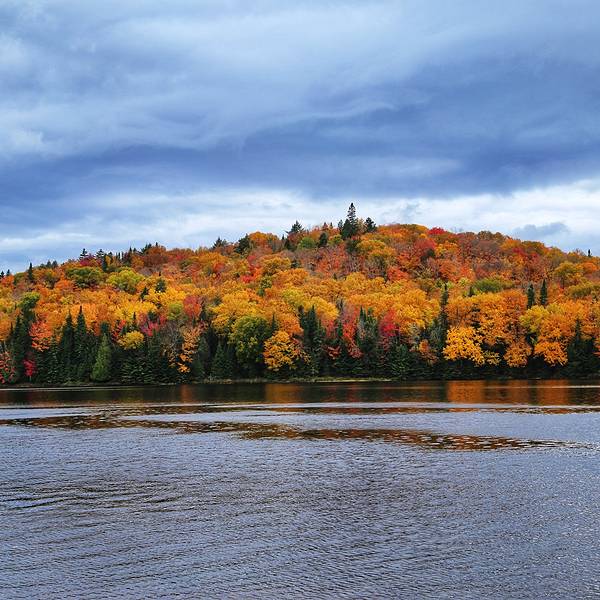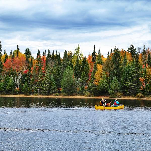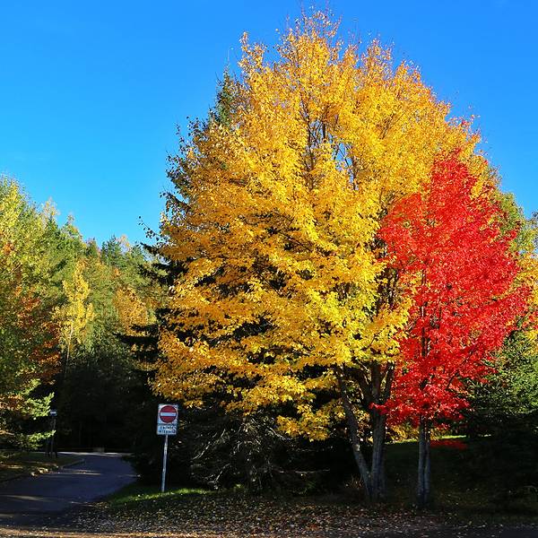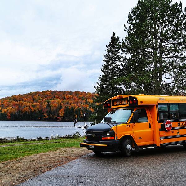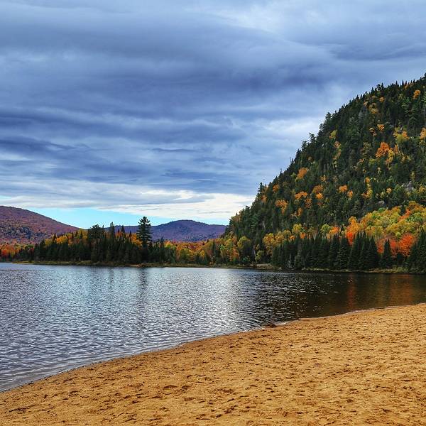 Mont-Tremblant National Park(法语:Parc national du Mont-Tremblant)是位于加拿大魁北克省蒙特朗布朗(Mont-Tremblant)以北的一座占地1510平方公里的省立公园。这座公园是继Kuururjuaq National Park之后魁北克第二大的国家公园。路上有不同的露营区和小的停车场,刚进去不远就忍不住停下来,在路上走走的感觉真好。树林的小河,河水发黑,估计是从树林里腐殖土流过导致的。林中还有些轻雾。松树上长着长长的松塔。很好奇这里会有校车,难道公园里还有人在居住么。形状非常漂亮的枫树,朝阳的一面是红色,背阴的一面是黄色,很有特点。在这里骑行也是不错的体验。拥有6条大河和400多个湖泊和溪流的蒙特朗布朗是独木舟爱好者的天堂。顺着公园的大路向里开,不多远就有到达不同湖边的停车场。湖心岛上最常见的是松树。现在的蒙特郎布朗是最好的时光。湖边还会不时出现冲积的沙滩。公园很快就没有了手机信号,就顺着路一直开下去,两侧的枫树和其他彩叶林遮天蔽日,美景使人陶醉。开到后来树木才渐渐的矮了下来,并且变得稀疏。再往前开,路就从柏油路变成了砂石路,路边也没有了彩林,但是从地图上看依然还有很多湖泊可以去看。不过我们重点是看红叶,于是不再前进,掉头往回走。