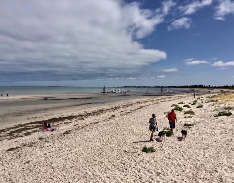 撒马佛海滩(Semaphore Beach)位于阿德莱德西侧海岸,白色的浅沙滩,宽阔而宁静,是...