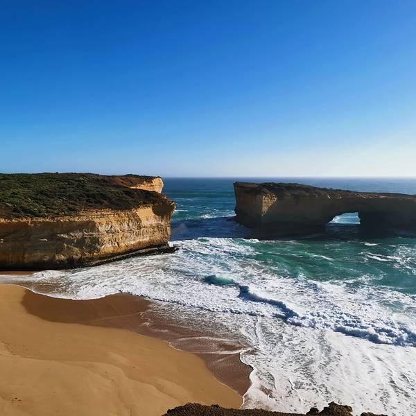 面对着强劲的海风和汹涌的巨浪,另一个桥拱坍塌也只不过是时间问题,不得不赞叹大自然的力量伦敦 桥是一块状似桥梁的巨大砂岩,同样是在亘古不息的海风和海浪的侵蚀下形成的。这块岩石曾经与陆地连接,由于海浪的侵蚀冲刷形成2个圆洞,正好成双拱形,所以起名为“ 伦敦 桥”。1990年1月15日的傍晚时分,与...伦敦 桥是一块状似桥梁的巨大砂岩,同样是在亘古不息的海风和海浪的侵蚀下形成的。这块岩石曾经与陆地连接,由于海浪的侵蚀冲刷形成2个圆洞,正好成双拱形,所以起名为“ 伦敦 桥”。1990年1月15日的傍晚时分,与陆地连接的圆洞突然塌落,与大陆脱离,形成现在看到的断桥。据说断裂的时候,有一对年轻人在桥上拍照,崖石坍塌后无法回到陆地,求救后派出直升飞机才把他们救回。面对着强劲的海风和汹涌的巨浪,另一个桥拱坍塌也只不过是时间问题,不得不赞叹大自然的力量。 展开