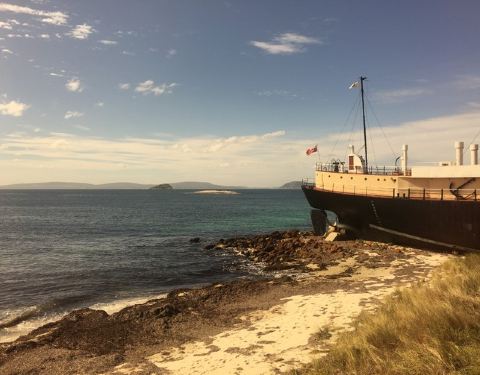 鲸鱼博物馆左边走到底有一片小沙滩,临近黄昏时候最适合拍照留念,另一边可以观看全景