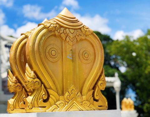 就甲米来说,绝对值得专程来的景点。甲米除了海滩和浮潜,景点不多。白庙算是其中一个。 就在中心市场和猴子红绿灯的不远处,看到金灿灿的龙形状楼梯就是了。最美的地方也是这里,即使是阴天拍出来依然明媚。 寺庙进入大殿需要脱鞋,不能穿短裙短裤。