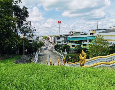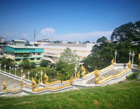旅遊攻略建議玩2-3小時。個人覺得三十分鐘至45分鐘,全部都睇完了。在市中心。近河邊。當然與曼谷及其他的自然相比就是細得多了。拜神的話就不論了大與小。我拍的照都差不多了。就是那麼大這一些地方。沒有什麼地方可以坐下來休閑的。碰到外國遊客及本地學生。有兩個進口。一個是走樓梯另外一個是可以有車道的,可以有停車位的。順便經過,值得睇。是比較安靜給清潔的。
