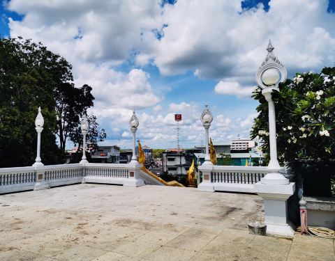 寺庙算是很干净.有点像清莱的白庙.到这的游客不多.这边是免费的.登上可以望甲米镇一角