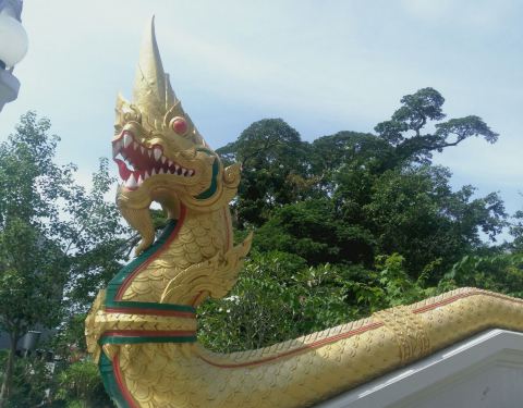 就甲米来说,绝对值得专程来的景点。甲米除了海滩和浮潜,景点不多。白庙算是其中一个。 就在中心市场和猴子红绿灯的不远处,看到金灿灿的龙形状楼梯就是了。最美的地方也是这里,即使是阴天拍出来依然明媚。 寺...