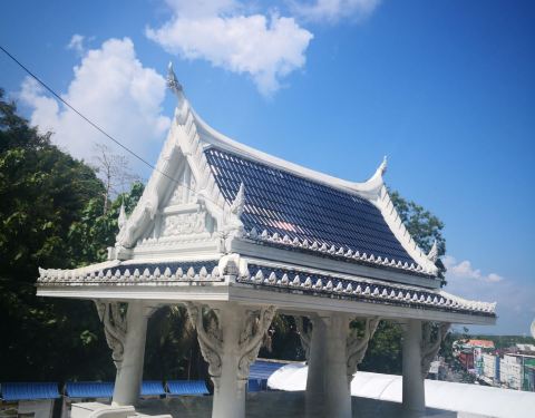 寺庙算是很干净.有点像清莱的白庙.到这的游客不多.这边是免费的.登上可以望甲米镇一角在甲米城区上...有点像清莱的白庙.....这边是免费的...到这的游客不多...寺庙算是很干净...寺庙在高处...登上可以望甲米镇一角
