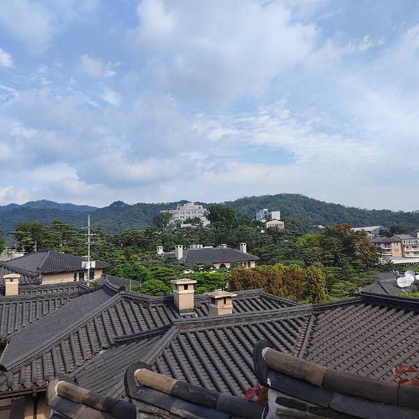 应该是叫北村工艺博物馆吧,总之是需要花钱的,其实我们进去也主要是走累了想歇歇,6000韩元每个人的门票,但是可以送一杯咖啡或茶,要拿铁的话还得另外加1000韩元,也是醉了。这里其实主要是风景好,在北村的高...