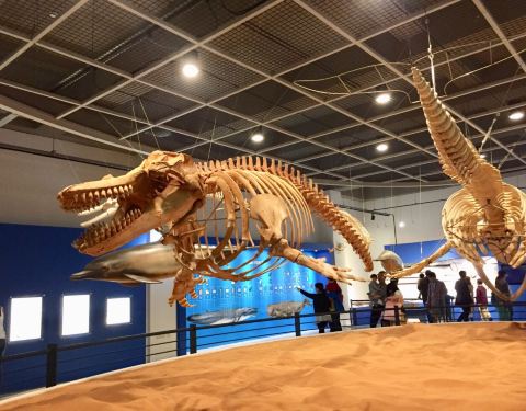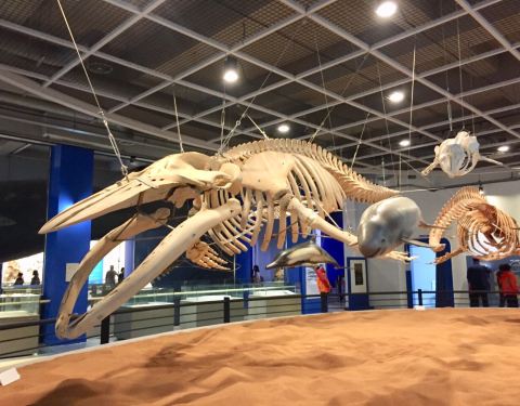 金玉博物馆里面有非常大鲸鱼的骨骼化石的标本