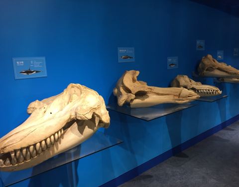 作为海洋中的最强杀手,虎鲸的下颌有着非常坚硬的牙齿。 而且旁边的骨头是也真是虎鲸的骨骼组成的从2楼开始的博物馆,踏进去第一步就有压倒性的作品,因为这里有一座仿佛正在游泳的巨大鲸鱼模型展示在大厅中。这个模型中的骨头是由真实的22吨的布氏鲸骨头组成的。 而且旁边的骨头是也真是虎鲸的骨骼组成的。作...从2楼开始的博物馆,踏进去第一步就有压倒性的作品,因为这里有一座仿佛正在游泳的巨大鲸鱼模型展示在大厅中。这个模型中的骨头是由真实的22吨的布氏鲸骨头组成的。 而且旁边的骨头是也真是虎鲸的骨骼组成的。作为海洋中的最强杀手,虎鲸的下颌有着非常坚硬的牙齿。 展开