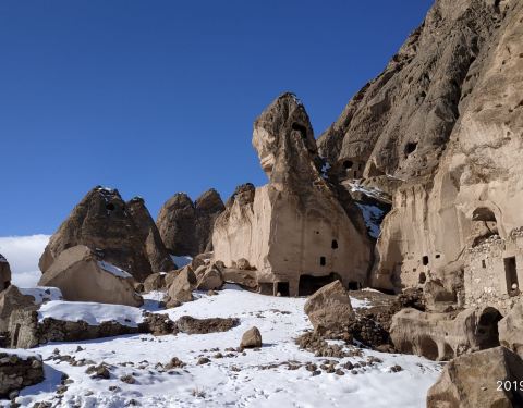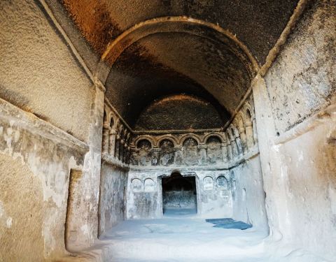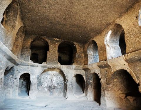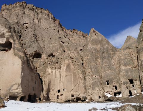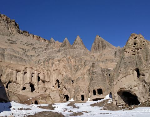 塞利梅修道院属于厄赫拉热峡谷的一部分,是由一系列的石窟教堂、修士居所构成,这里就是一座古代城镇。徒步线路是从山脚爬到山顶附近的大教堂,沿途能参观一间巨大的厨房,几座马厩。双层的大教堂建筑格局保存良好,虽说不上气势恢宏,但当时仅凭借有限的人力,使用简单工具开凿这样些的大型石窟已是不易。