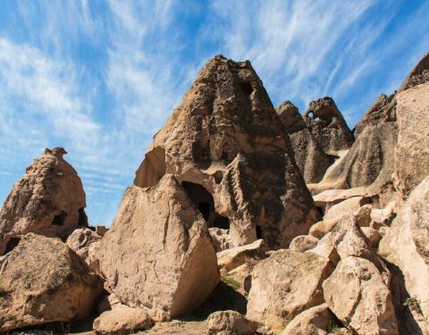 塞利梅修道院建在一座石山内部,想要看修道院就要先爬上去塞利梅修道院建在一座石山内部,想要看修道院就要先爬上去。虽然卡帕多奇亚“盛产”这种石头里的建筑,但是塞利梅修道院还是有着别具一格之美。这里因为酷似《星球大战》中突尼斯的土洞屋群外景地而闻名,山岩上...塞利梅修道院建在一座石山内部,想要看修道院就要先爬上去。虽然卡帕多奇亚“盛产”这种石头里的建筑,但是塞利梅修道院还是有着别具一格之美。这里因为酷似《星球大战》中突尼斯的土洞屋群外景地而闻名,山岩上寸草不生,远远望去像是一只千疮百孔的庞大外星生物,怒发冲冠并将触角伸向四面八方,让人顿生畏惧。因为没有路,需要手脚并用才能爬得上去,阳光将山体染得金光刺眼,更增加了不少挑战。一小队人马像是行走在外星球的探险家,不知前方等着自己的是何惊涛骇浪的景象。 展开
