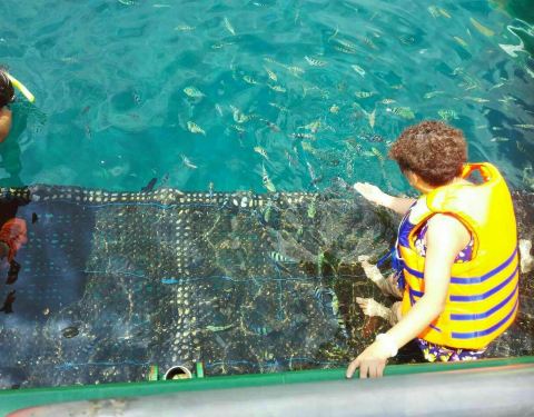 ...船,蹦蹦床,海钓,潜水艇,独木舟,海泳……中午的海鲜烧烤,再加服务站的自助咖啡,水,当地小点心