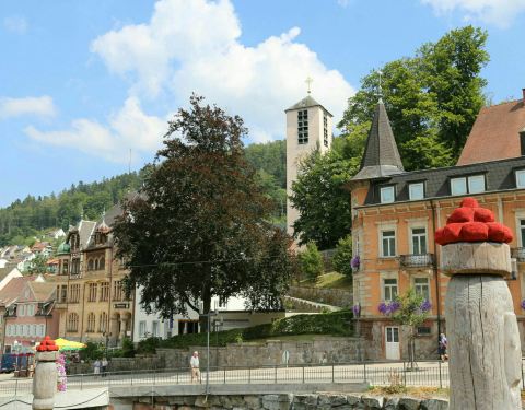 特里贝格小镇不大,只有一条主要的街道,路边有很多童话传说雕塑以及对当地动植物的介绍牌。主要景点有黑森林、千钟屋和特里贝格瀑布。