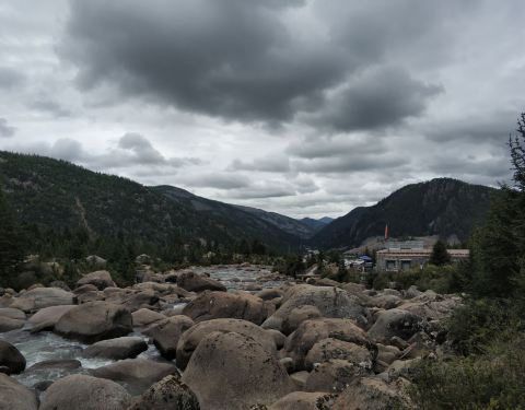 稻城石河公园位于稻城亚丁机场到稻城县的马路边上,远远的在山上就看见全身石头的一条带子,周围植物茂密,只有中间的大大小小的石头,再往下游就看见流出的水啦,非常神奇漂亮。公园免费,许多人只在大门口走走,其实往上走还有很大一片可以游玩的。