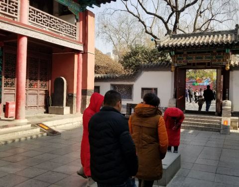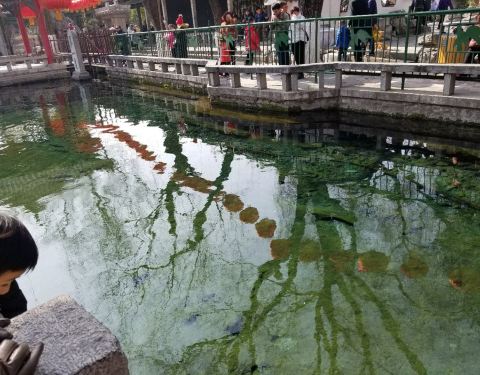 这是个纪念娥皇女英的一个大殿。在趵突泉景区里,很不起眼,在三股水泉池的北面一点。人也不多,挺清净的。即便是在人数最高峰的时候,也很静沁
