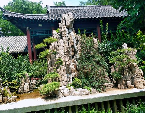 不是很大的一个小园林,进门之后就有一颗非常高大的树木,旁边还有一些人正在修剪园林,里边有四五间房子,然后现在都展示的一些东西。没有看介绍,就简单的看了一下园林的风格。