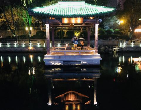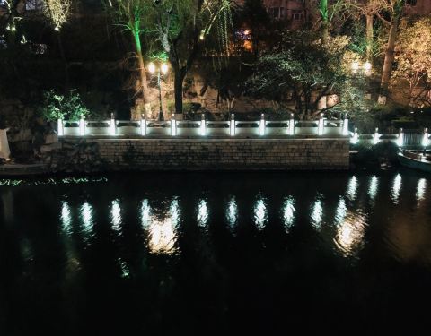 五莲泉在黑虎泉附近,是在护城河里面的一个泉,在一个独立的石头小岛上,宛如仙境,无法近处观看,只能远望,也是我最喜欢的一个泉,景色真的超级美,小小的石头岛上,一些植物围在其中,泉水潺潺,泉淌入河,绿波中水涌细浪,两水相叠,十分美丽,不过只能划船到那里一探究竟,超级喜欢的泉,文字难以描述它的美好,可以来看看。