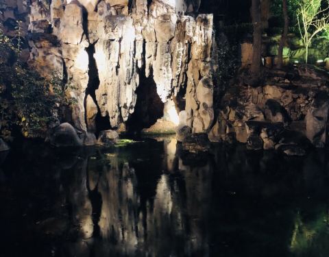 ...城河中心有如同石莲一样的平台流出泉水,很有特色,泉水清澈,整体意境也很深远,莲心涌泉,特别漂亮