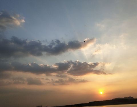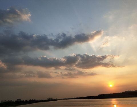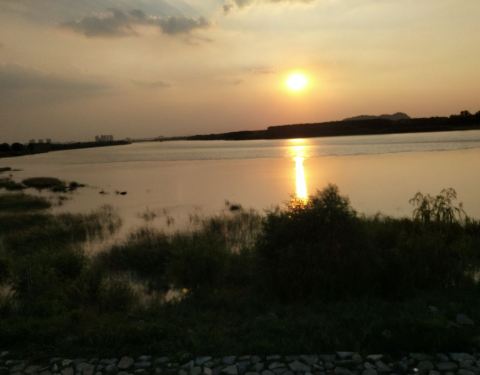 母亲河畔看夕阳,不一样的烟火。离家近,自己骑车就去了