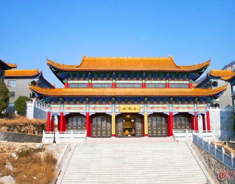 义净寺,离济南不远,在104国道边上。看到路标后,沿着路标走即可,道路不宽,但车辆极少,两侧都是庄稼地,顿时心情就放松下来了。进去不到3公里,就来到寺庙脚下。停车场大约能停10辆车左右(免费)。 停下车就能看到大门,看到门前斜坡上停着好多辆自行车,这是附近学校的学生来这里玩的,阳光健康的孩子和这样的游玩方式,让人感觉秋天的阳光也温暖许多。 寺内目前有三层佛寺,佛寺占地不大,因为三层建筑几乎是垂直上升而建,每个小院子因为有义工们的打理都干净整洁。来寺庙的人不多,每个香炉旁都有免费的香烛,游人可以自取,根据心意供奉香火。没有一旁劝敬香的人,游客反倒更愿意像佛祖表达诚意了。偶然瞥见佛寺外窗台上放置了一碗小米和几支豆荚,猜想这就是佛家的慈悲心吧。 看到"前方施工,闲人免进"的牌子,还是可以继续攀登的。拾级而上到了尽头,从右侧树林中穿过,环绕一圈,就可以看到另一番景象————十几座佛寺正在建设中彼此相挨,有一层的,有三层的,有山尖上的,还有凹陷在山洼里的。其中几座已初见面貌,想象着,这些佛寺都建成之时,这里也一定香火旺旺。 下山时,看到台阶上有柿子摔碎的泥儿,抬头看到,上面高大的柿子树结了不少果实了,没人摘去,它就自己随缘落下。清静之地,适合清净之行,此地适宜。