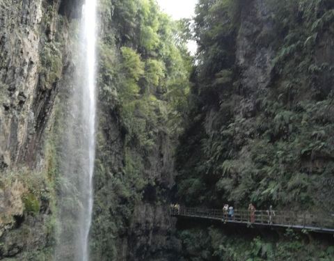 ...部到地缝顶部形成于2.1亿到2.9亿年间,平均深75米,宽15米,两岸陡峭,飞瀑直泻,魏伟壮观
