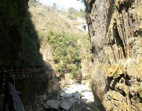 云龙地缝是一个值的去的地方,从地缝底部到地缝顶部形成于2.1亿到2.9亿年间,平均深75米,宽15米,两岸陡峭,飞瀑直泻,魏伟壮观。