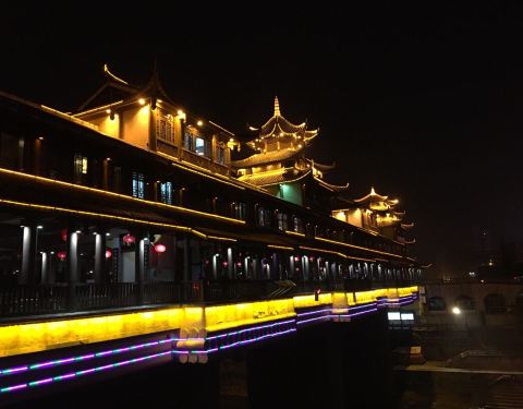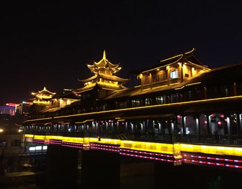 在清江上,恩施造了一座很大的风雨桥,这座桥也符合现代恩施的特色。夏天到了,很多当地人在一层的桥面上乘凉,二层是商业喝茶的场所,晚上整座桥亮起灯,不会亚于黄鹤楼