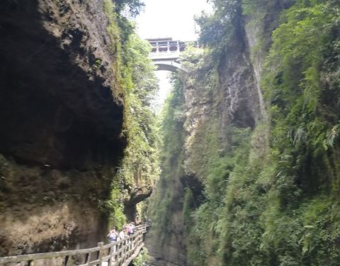 在地缝底下仰视这座桥,更能体现这段地缝的神奇幽深。云龙风雨桥"这里的"云龙风雨桥"指的是恩施大峡谷里云龙地缝上的一座桥。前面很多评论写的是市区的那座,是不一样的。 在这里设计一座桥是很有趣也很有意义的。因为这是唯一一个能在地缝上方俯视这条缝的地方。在桥上,脚...这里的"云龙风雨桥"指的是恩施大峡谷里云龙地缝上的一座桥。前面很多评论写的是市区的那座,是不一样的。 在这里设计一座桥是很有趣也很有意义的。因为这是唯一一个能在地缝上方俯视这条缝的地方。在桥上,脚下是70余米的深渊,头顶上是七星寨壮观的峰林,适合摄影,很漂亮。 在地缝底下仰视这座桥,更能体现这段地缝的神奇幽深。 展开