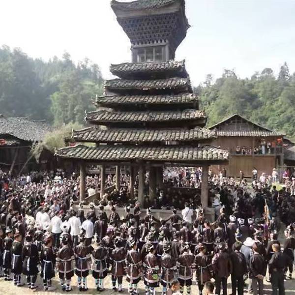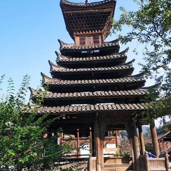 述洞村古村落,唯有的世界之最独柱鼓楼,原始风景,空气清新,