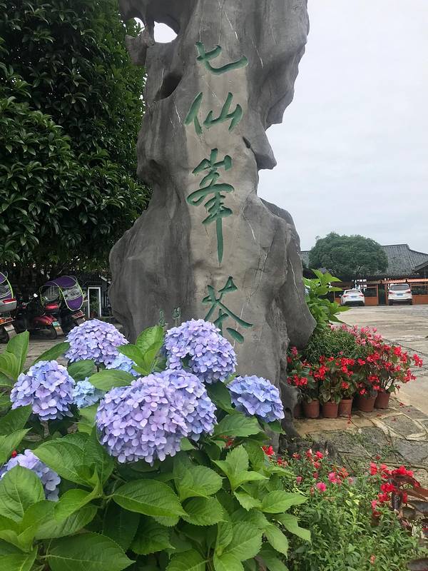 桂林好玩的景点真的是太多了,如果没有熟人,可能就会去一些旅行社推荐的比较经典的景点,虽然景色很美,但难免落入俗套。 去桂林的第三天,去了阳朔,有人说桂林山水甲天下,阳朔山水甲桂林,去了之后发现这话一点不假,阳朔的山水堪称一绝。很高兴有一个在阳朔的朋友,可以带我们去一些小众旅游景点,人不多,但风景也很美。我们一行四人,朋友两人骑摩托车带我和另外一个人去相公山玩,途径七仙峰茶场,想着既然来了,就进去逛逛。 上山的路很平坦,骑摩托车兜风真的是非常棒,但如果没有这样的条件,选择包车上山也是不错的。到了七仙峰茶场之后,我被门前的绣球花吸引了,以前只在网上看过图片,原来真的有这么美的花。和朋友进去先喝了一会茶,我对茶叶不是很懂,但是感觉茶还是很好喝的。之后我们背着竹楼和小筐就进茶场去采茶了,茶场风景如画,一排一排的茶树,像排列有序的梯田,池塘里面还有颜色缤纷的睡莲,真的是美炸了。采茶的时候遇到一位茶艺师,还很热情的教我们要如何采茶,讲解了一些有关茶叶的知识。采完茶之后,我们去炒茶,第一次自己做茶叶,真的感觉很有意思,也才知道茶叶是经过晾茶、洗茶等工序做出来的。我们采的茶叶比较少,这张照片是拍的其他游客采摘的茶叶。炒茶之后还要拿出来,然后再放到锅里,工序繁复,但是乐在其中,因为还要去相公山,所以我们采的茶叶比较少,最后制作好的茶叶,只够泡一杯,但体验过程还是很开心的。