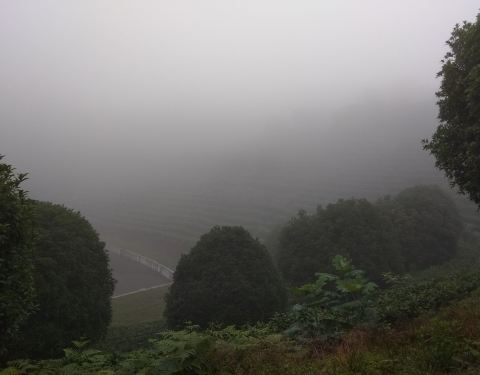 那天去游玩,天气不太好,天空下起了雨,不能欣赏梯田上种植的茶树,但是雨中漫步中茶树中,别有一番景象