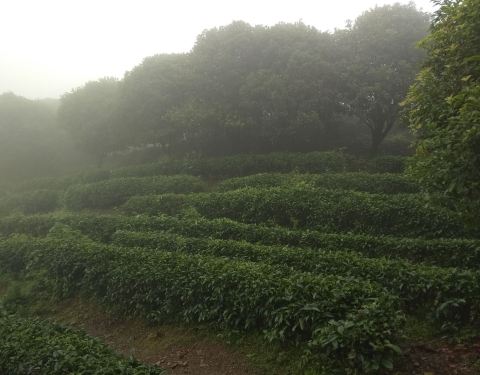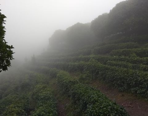 ...的茶树,层层梯田的茶树绿绿葱葱,那一天淅沥下雨,在雨雾中一眼望去茶叶油绿还有点点水滴,非常好看
