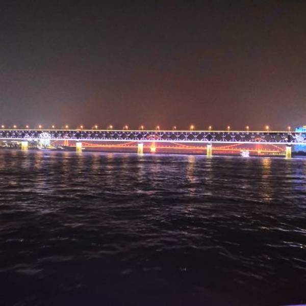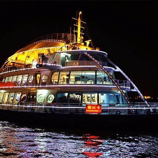 来到武汉,如果不去江滩吹吹风,好好欣赏一番江边美景,似乎都对不起“江城”这个名号。而登上船长9号游船,你更能徜徉在长江上,以全新的视角,遥望车水马龙的城市夜色,领略江城的另一面风情。 游船从武汉港23号码头发船,沿途经过西安舰、禹功矶、晴川阁、长江一桥、汉阳江滩、黄鹤楼、武昌江滩、江汉二桥、粤汉码头等多个城市地标。这些被霓虹灯点亮的地标建筑,在潺潺江水和粼粼波光的映衬下,又散发出另一番风情,带给你与白天截然不同的新奇感受。 “船长9号”以著名科幻动画《太空堡垒》中的巨型太空战舰为设计蓝本,外形独特,充满了科幻色彩。船体分为三层,内设超大多功能厅、270°贵宾观景厅和VIP宴会厅,还有360°观景阳光甲板,配置豪华。船上还有自助餐可选,琳琅满目的饕餮美食可以让你大胆尝试新鲜口味,满足你的味蕾。