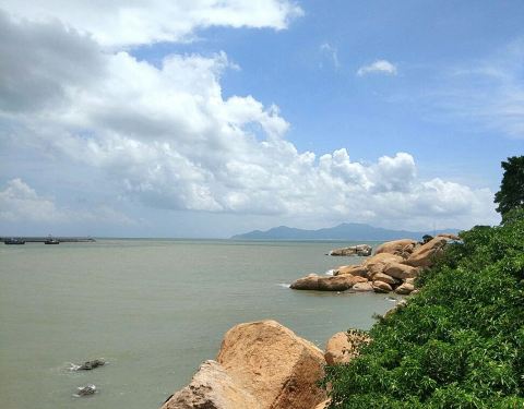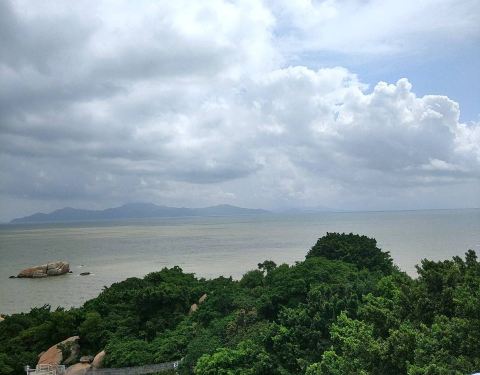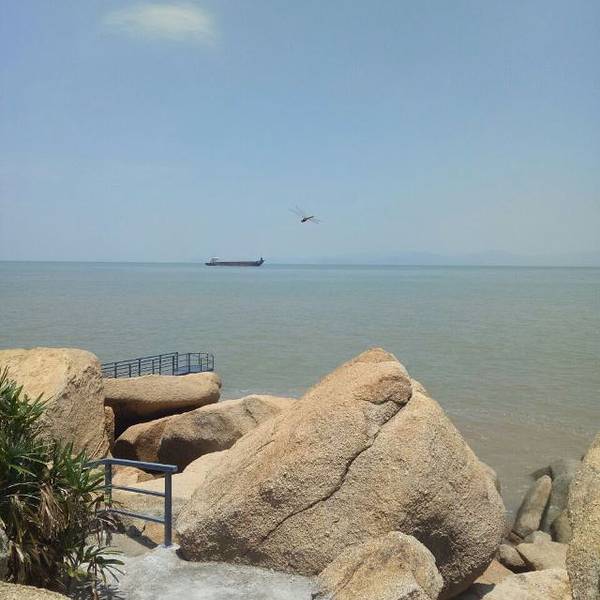 加上阳光和熙特别舒适 去的有点晚 只能遥望远远的古舟岛吹吹海风踏踏浪 天气原因跟黑沙湾完全不同的感觉