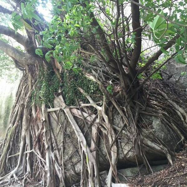 古舟岛上是一个挺好玩的地方,有奇石,有怪树,有古庙,空气好,又凉爽,是个风水宝地