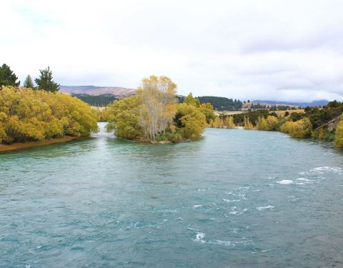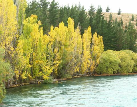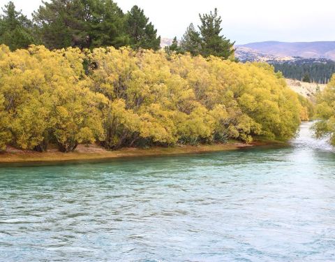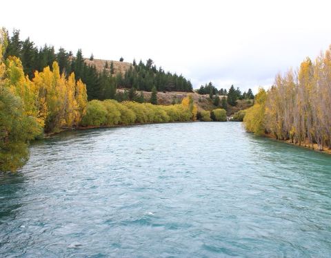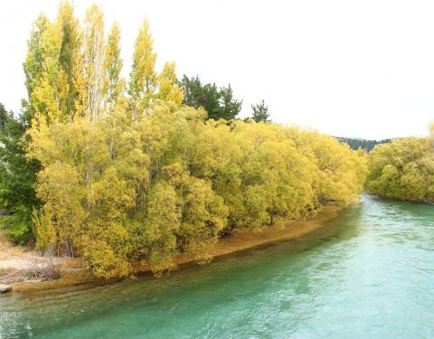 落水溪是瓦纳卡最重要的一条河流,虽然叫溪但真的像一条河,河水非常的充沛,而且颜色湛蓝非常干净。河水两岸都是灌木丛,深秋时节树丛变成金黄色,那真的很漂亮,值得欣赏一下。