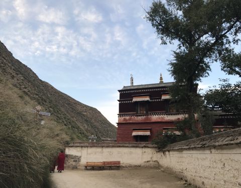 在拉卜楞寺的最边上了,是转经过程中会路过的地方,位置在山脚比较高,也可以俯瞰拉卜楞寺的全景,参观需要门票,比较古老破旧。