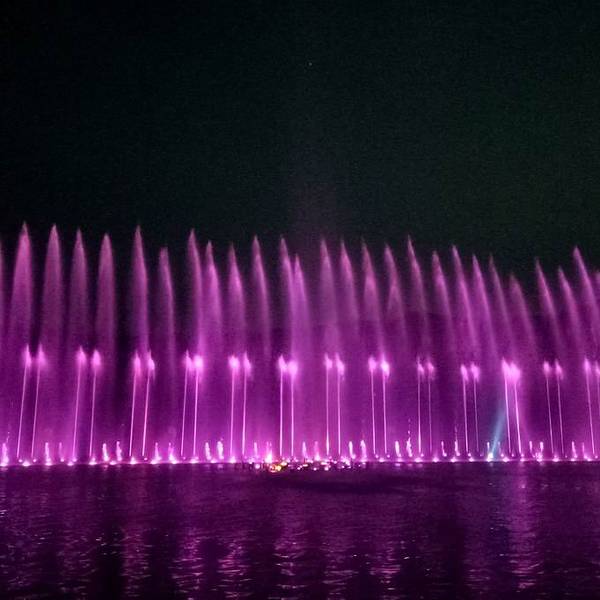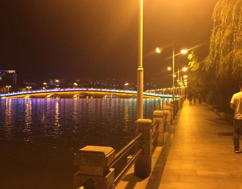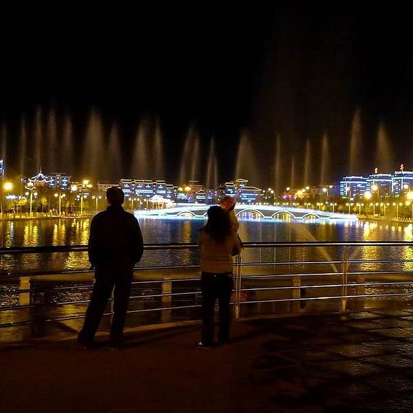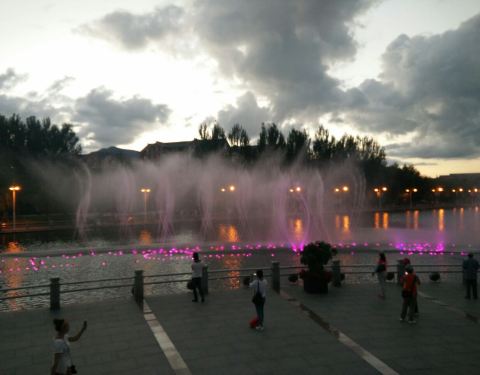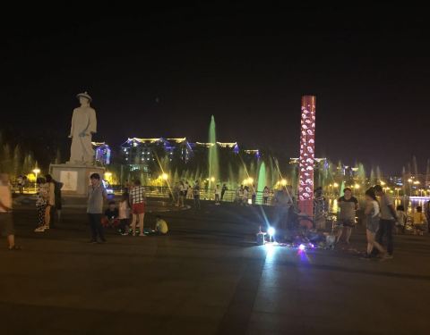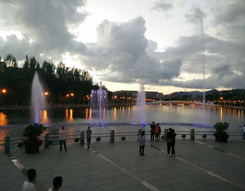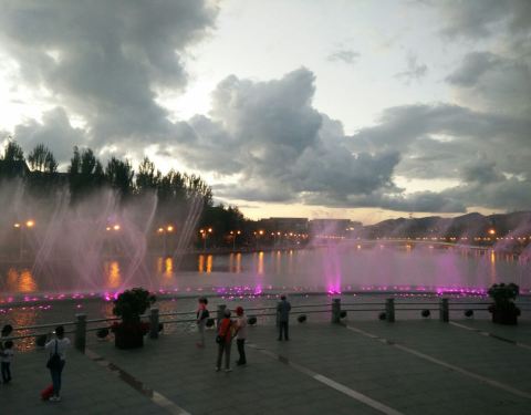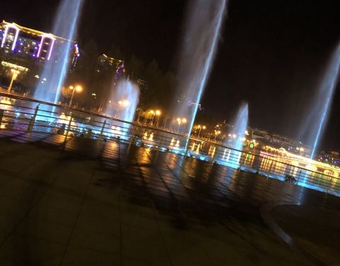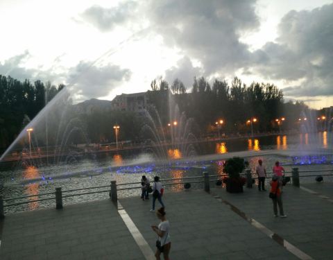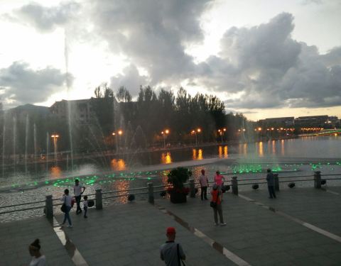 休闲好去处,很热闹,很干净,河边还有各种器材可以健身,有好多跳广场舞的!喷泉六点半开始,很漂亮,欣赏后再去民族广场看水幕电影,时间刚刚好!