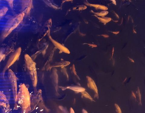 遛弯的小公园~很热闹!结果被大雨浇到惊喜孩子边喂鱼边开电动车!孩子的乐趣就是这么简单