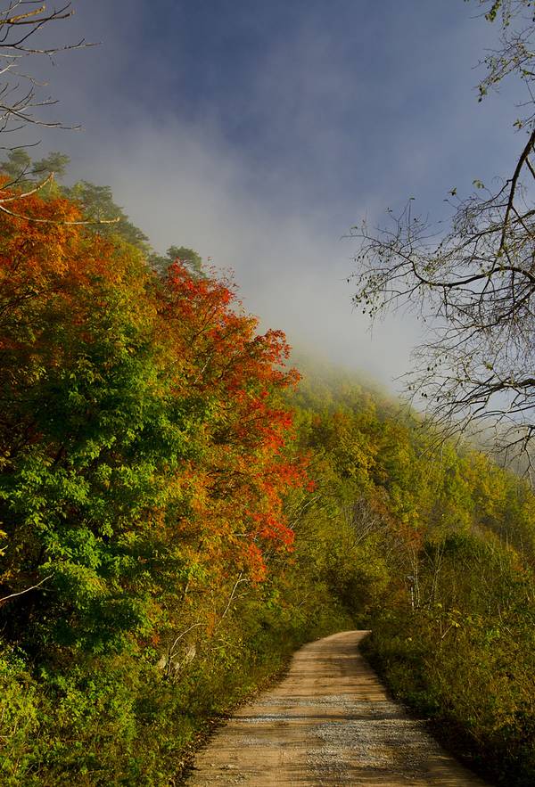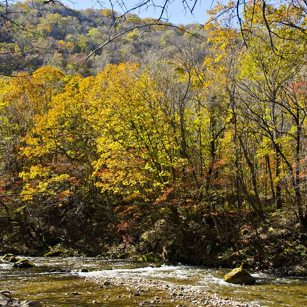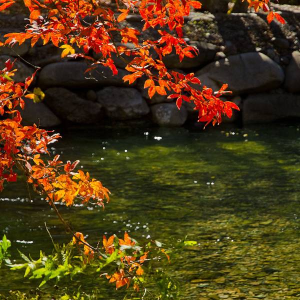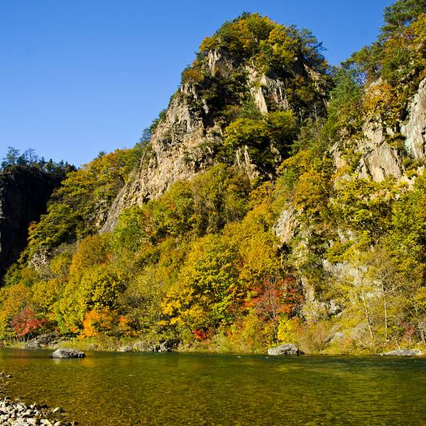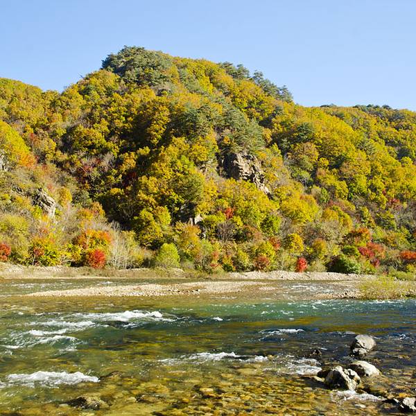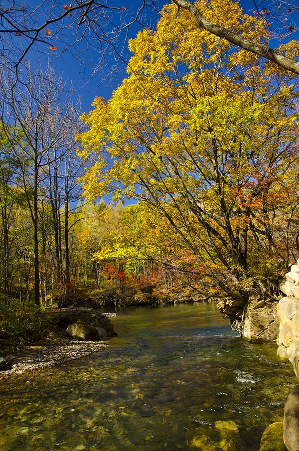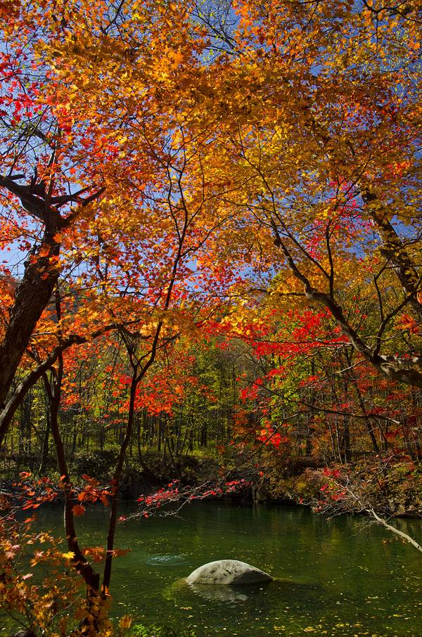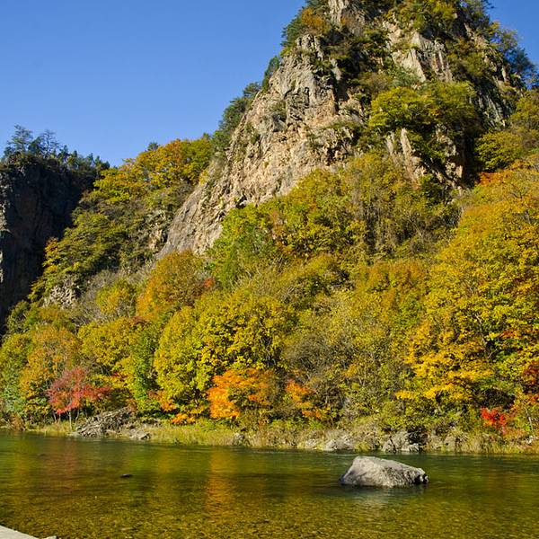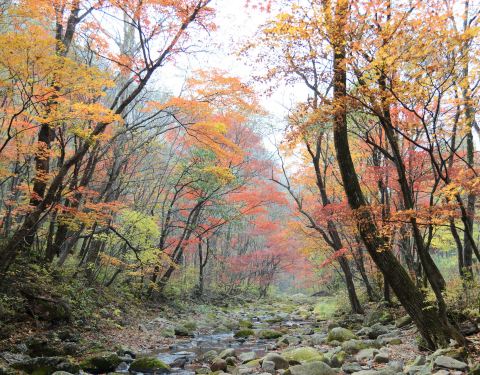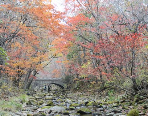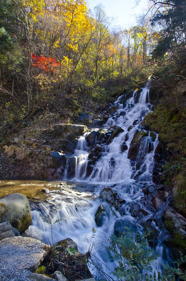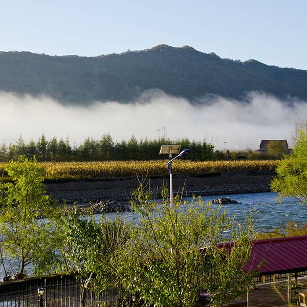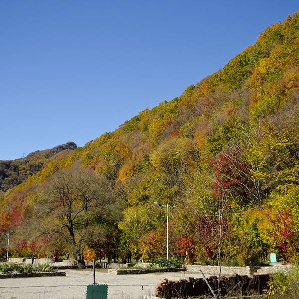 10月12日,晴 早上附近小河村庄还是笼罩在薄雾中早餐后退房,在奔向本桓公路前会经过一个湖里村,村口的小溪比较清澈,溪边的山有点形,可以停留拍个人像什么的。沿本桓公路东行一段,再向南一点便是大地森林公园,本是个不收费的景区,但今年有人上来收费30,不知是个人还是集体行为。开车进景区再收30。可以一直沿土路开到最里面的瀑布,由于今年雨水多,瀑布还有一点水量。里面的其它景色是没什么,整个公园只有一进门后的一段还有些红叶欣赏,远不如网上别人游记中记录的那么漂亮,看了大石湖和老边沟,这个其实不必再来了。附近还有个洋湖沟,本应该是个小景点,却不知为何停了许多旅行大巴,甚至比老边沟的游人还多,车辆本可以沿小路向里行进的,但却被众多小摊车辆阻挡,若想向深处欣赏,只能乘坐农用拖拉机,却也不知里面有什么,好像游人全部盲从地不知所措。唉,大致走了一段便出来了。