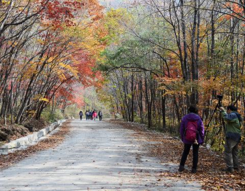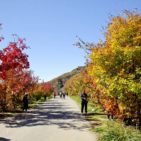 我感觉大地森林公园是本溪仅次于老边沟的秋天最好的观枫之地,这里少有人为开发的痕迹,观枫地点稍显分散,但是不乏令人感到惊艳之处。特别是主要道路上的景色,是这里最为独特的。这里也适合徒步。