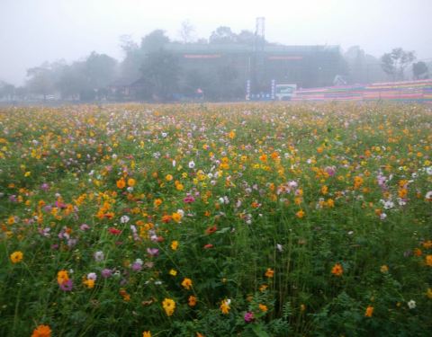花海确实很美啊,一大片的格桑花,菊花,去的那天下了雨,别有一番意境但如果天晴的话我想景色应该会更好