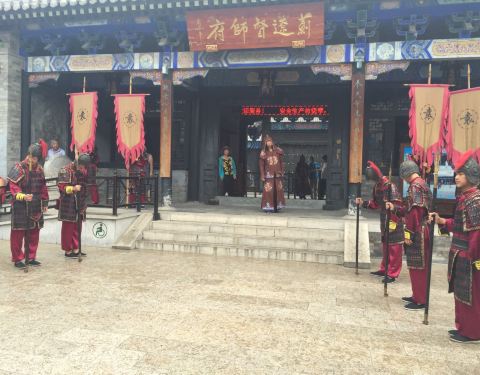 里面也不值40元门票。每天有四次表演时间,就在大门外,没什么看头。现在的督师府是2002年复建的1644年吴三桂勤王时,火烧督师府。现在的督师府是2002年复建的。每天有四次表演时间,就在大门外,没什么看头。里面也不值40元门票。