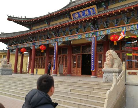 冬季东戴河一游,无意中发展有这个寺庙,看样子都是新修的,也许历史悠久?这里离海边不远。,进得门来,大殿威严,干净,院子不大,但看海视野开阔,这么清净,大概是利于修行吧。除了屋顶的鸽子群,几乎没人,俗人好好在这里反思自己吧