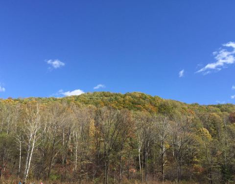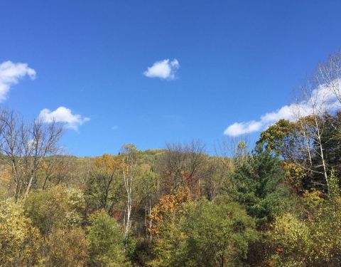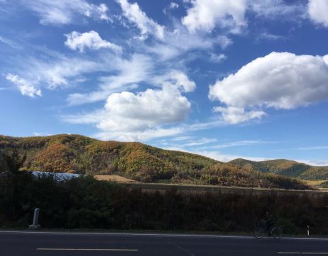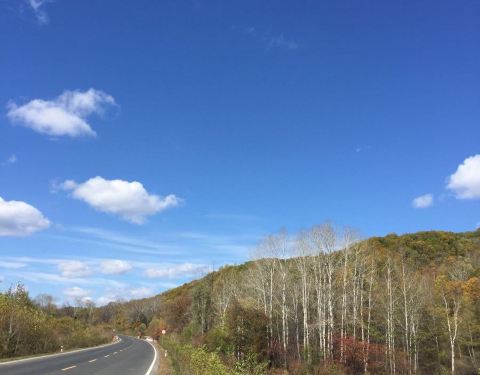 开车路过,这里的森林景色太漂亮了,配上蓝天很映景!