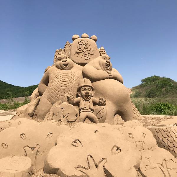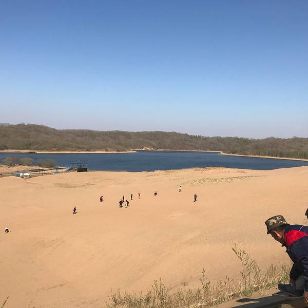 沙丘欢乐谷 这里风景优美 湖面平静沙子随处可见茫茫沙滩 中 有一片湖 很是应景 很是漂亮沙雕 很是庄重典雅 吴大徴动画片俩的 熊大熊二 和光头强