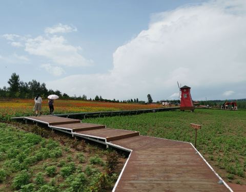 5.1假期去的,人气很高,自驾游,旅行社组团的都有。由于刚入春,鲜花没有开到漫山遍野的程度,只是几处盛开。玻璃栈道体验的人很多,但100元定价偏高。彩虹滑梯也是人气爆棚,孩子排了一个半小时才轮到。入园不收门票,景区其它项目都是单收费的,估计夏天景色还能更美,毕竟是延吉龙井人气最高的景点了,开了6小时车,游览用时1-2小时。建议朋友们夏天游览!