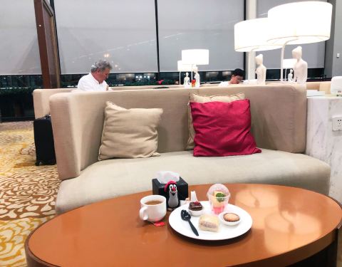 六七点人最多,位子几乎没有,只能和别人拼桌… 我吃完一轮后有一桌空出来了,赶紧换场地,嘻嘻~ 充充电,吃吃甜品,打打游戏,时间过得飞快! wifi信号不是很好,还没有机场的wifi快,这个网速简直了! 这里的餐饮还不错,比某些五星级酒店的自助早餐好吃点。甜品不行,自制的水准有点差。方便面无论什么时候都很好吃~ 我的登机口在C57,八点一刻登机,我八点二十离开贵宾室,走到两眼昏花 总体还是不错的,比先前国际线去的那家好太多!