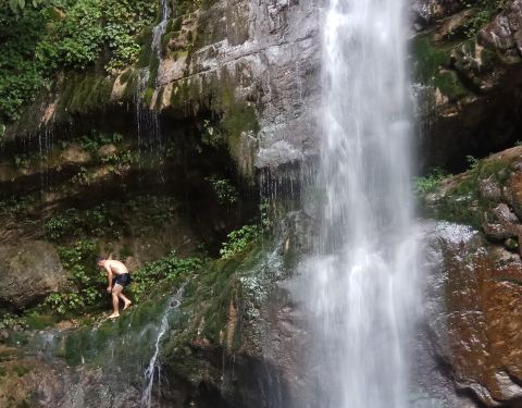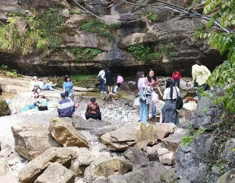 门票还算便宜,走路上山,半山腰有个大溶洞,天然硝洞,对着坐一会比空调还冷